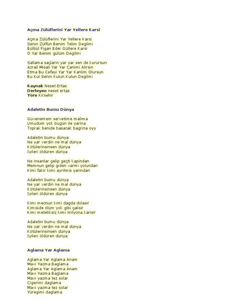 Mersin Yoresine Anlatan Turku Veya Sarki Sozleri Lutfen Yardimci