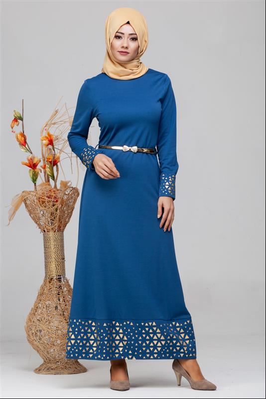 Mavi Tesetturlu Elbise Tesettur Elbise