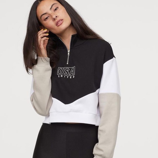 H M Short Sweatshirt Black Usa Shopee Indonesia